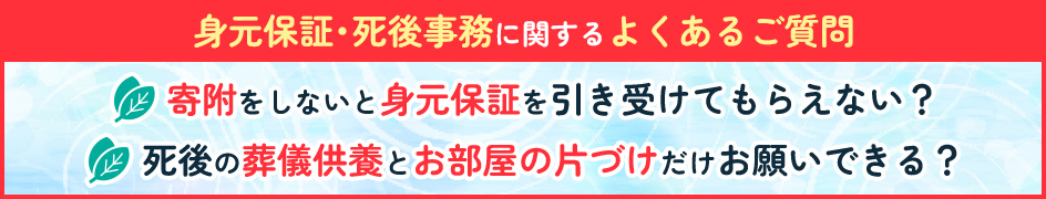 高齢化や核家族化が進むなか、「身寄りがいない」「家族に迷惑をかけたくない」といった理由から、日常生活の支援から、施設入居・入院の支援、万一の際の葬儀や供養、家財処分などの死後事務手続きなど、老後のさまざまな場面で不安を抱えている方が多くいらっしゃします。