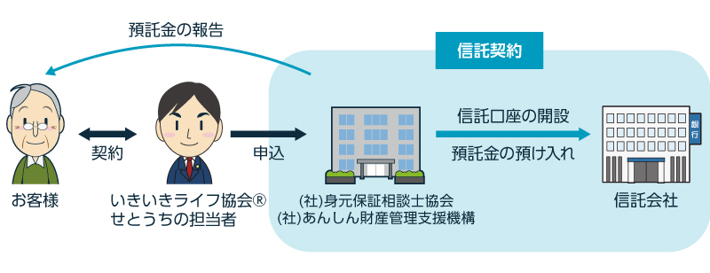 いきいきライフ協会®せとうちでは、預託金としてお預かりする費用は事業者の運営資金と区別された倒産隔離機能のある信託口座でお預かりをしております。