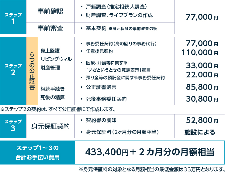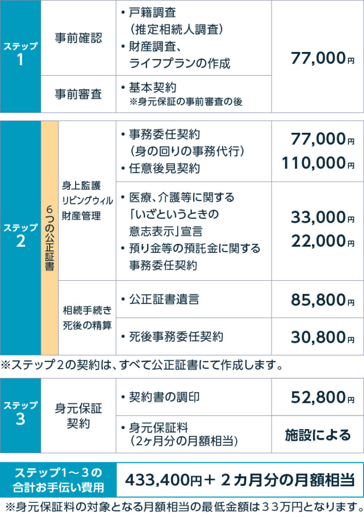• 身元保証の引受け: 1回22,000円(税込) ※入院時など、その都度発生いたします。
